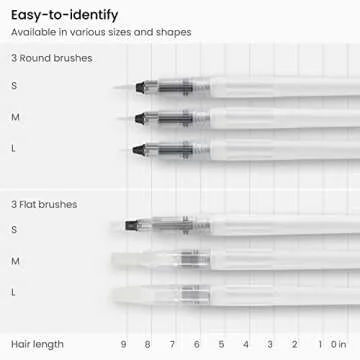 Show moreUnleash your creativity with the ARTEZA Water Brush Pen Set, a versatile collection designed for artists of all skill levels. This 6-piece set includes three different brush tips: fine, medium, and broad, allowing you to achieve delicate details or bold strokes with ease. Each self-moistening brush pen is portable and perfect for use on the go, making it easy to create watercolor masterpieces anytime, anywhere. Crafted for durability, the nylon brush tips maintain their precise points, providing responsive sensitivity ideal for various painting techniques, including aquarelle and watercolors.