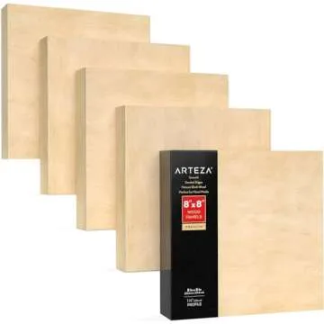 ARTEZA Wood Canvas Boards, 8 x 8 Inches, Pack of 5, Birch Wood, Wooden Panels for Acrylic and Oil Painting, Wood Burning, Crafting