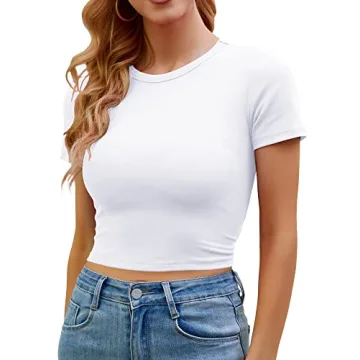 Show more Introducing the Artfish Women's Basic Teen Tee Workout Crewneck Short Sleeve Slim Fitted Casual Crop Top in timeless white, designed for unparalleled comfort and versatility. This crop top, crafted from a blend of 92% cotton and 8% spandex, offers a lightweight, breathable, and stretchy fabric that caresses your skin with a soft touch. Whether you're hitting the gym, dancing with friends, or simply lounging at home, this stylish cropped tee is a perfect pick for any casual occasion. Its crewneck design and short sleeves add an effortless charm, making it a go-to piece for warmer days.