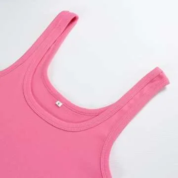 Artfish Women's Sleeveless Shirt Ribbed Fitted Scoop Neck Basic Long Crop Tank Top Square Rose Pink, L