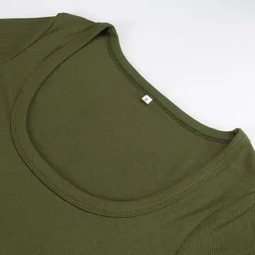 Artfish Women's Square Neck Long Sleeve Ribbed Slim Fitted Casual Basic Crop Top (Olive Green, S)