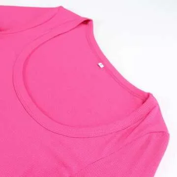 Artfish Women's Square Neck Long Sleeve Ribbed Slim Fitted Casual Basic Crop Top (Hot Pink, L)