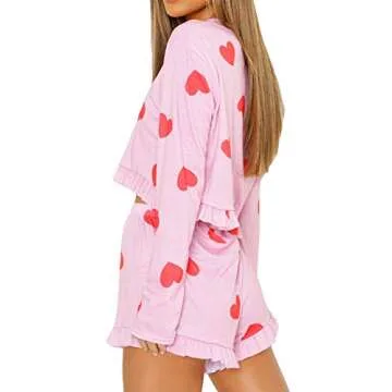 Artfish Women Valentines Pajamas Sets Lounge Graphic Cute Printed Cotton Pjs Hearts Pink-Red, M