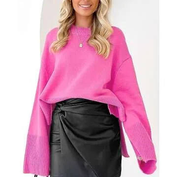ARTFREE Hot Pink Sweaters for Women 2023 Fashion Crewneck Long Sleeve Fall Outfits 2023 M