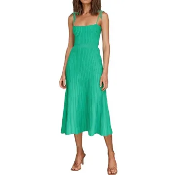 ARTFREE Womens Ribbed Knit Summer Maxi Dresses Tie Straps Square Neck Party Long Dress Green L