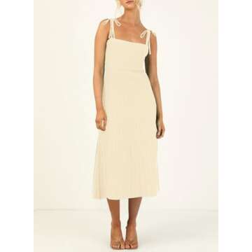 ARTFREE Womens Ribbed Knit Summer Maxi Dresses Tie Straps Square Neck Party Long Dress Apricot M