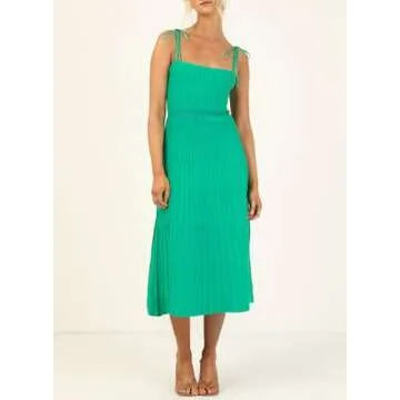 ARTFREE Womens Ribbed Knit Summer Maxi Dresses Tie Straps Square Neck Party Long Dress Green XL