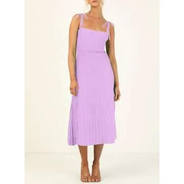 ARTFREE Womens Ribbed Knit Summer Maxi Dresses Tie Straps Square Neck Party Long Dress Lilac S