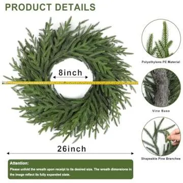 Artgar 26 Inch Pine Wreath - Christmas Wreaths for Front Door - Real Touch Pine Wreath - Large Artificial Green Pine Wreaths for Walls Windows Porches Farmhouse Indoor Outdoor Home Decor (Green)