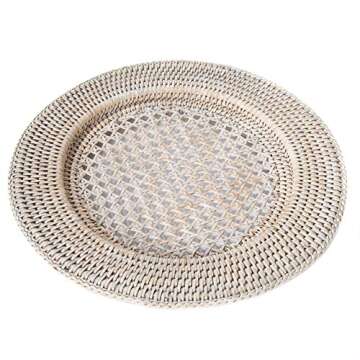 Artifacts Rattan 13" Open Weave Charger – White Wash Finish, Handmade