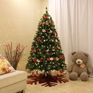 Our Christmas tree features innovative pre-lit LED lights that save you time and energy. With 300 energy-efficient warm white bulbs already installed on its lush branches, you can forget about tangled wires. The tree’s 8 unique lighting modes allow you to customize the glow, whether it’s a gentle twinkle or a steady shine, ensuring that your holiday gatherings are filled with merriment and warmth.