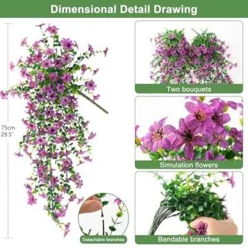 Show moreTransform your living space into a vibrant oasis with our Artificial Fake Hanging Flowers Plants for Outdoor Spring Decoration. This exquisite set includes two bundles of faux silk daisy flowers that perfectly mimic the beauty of nature, allowing you to enjoy a fresh and elegant atmosphere year-round without the hassle of maintenance. Each flower features soft petals and a clear leaf texture, creating a lifelike appearance that beautifies any setting, whether indoors or outdoors. With these realistic blooms, your patio, porch, or balcony will be the envy of all your neighbors.