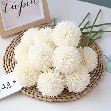 Artificial Flowers Chrysanthemum Ball Flowers Bouquet 10pcs for Home Office and Parties (Milk White)