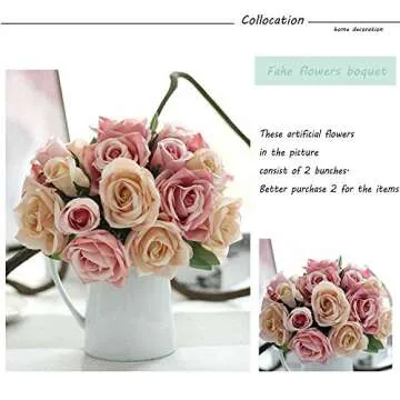 Artificial Flowers, Fake Flowers Silk Artificial Roses 9 Heads Bridal Wedding Bouquet for Home Garden Party Wedding Decoration