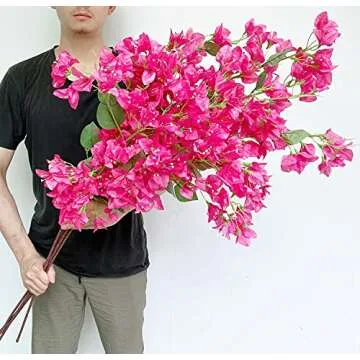Artificial Flowers Silk Bougainvillea Branches Faux Artificial Bougainvillea Floral Stems Long Plant Branches 45" for Wedding Centerpieces, Table Runner, Home Decoration (Hot Pink - Pack of 4pcs)