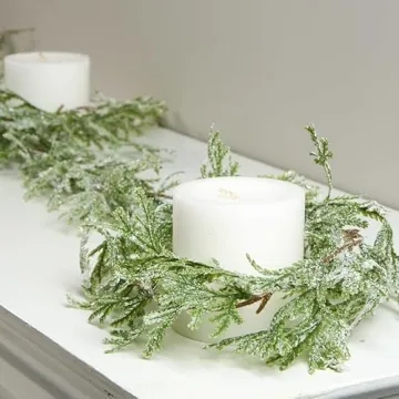 Artificial Glitter Frosted Cedar Cypress Pine Garland - Snowy Woodland Christmas Garland for Indoor or Outdoor Holiday Decorations (70 inches)