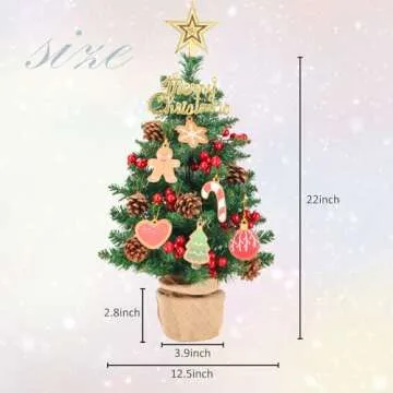 Artificial Mini Christmas Tree - 22 Inch Tabletop Decor with Ornaments