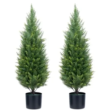Show moreIntroducing our stunning **Artificial Topiary Trees**, a perfect blend of beauty and convenience for your home decor. Standing at an impressive **3 feet tall**, these faux cedar trees come in a set of **two**, allowing you to style your space effortlessly. Crafted from upgraded, **UV resistant**, and eco-friendly **PE plastic**, these trees are not only durable but also exquisitely designed to mimic the vibrant hues of real foliage with dark and light green leaves. Ideal for indoor or outdoor settings, they transform any porch, garden, or office into a lush, inviting environment without the hassle of maintenance.