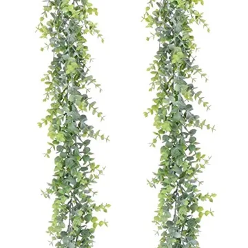 Artificial Vines Faux Eucalyptus Garland, Artiflr 2 Pack Fake Eucalyptus Greenery Garland Wedding Backdrop Arch Wall Decor, 6 Feet/pcs Fake Hanging Plant for Table Festival Party Decorations