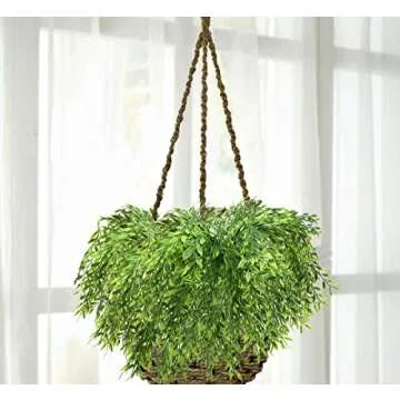 Artificial Weeping Willow, Plastic Plants Greenery Leaves Fake Hanging Vine Faux Ivy Garland UV Resistant for Home Indoor Outdoor Garden Door Wall Baskets Wedding Party Table Decor Decoration - 8 Pcs