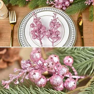 Artiflr 14 Pack Christmas Glitter Berries Stems Clearance, 7.8 Inch Artificial Pink Christmas Picks for Christmas Tree Ornaments, DIY Xmas Wreath, Crafts, Holiday and Home Decor (Pink)