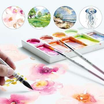 Show more Bring your artistic dreams to life with the ARTIFY Watercolor Paint Brushes set, an exquisite collection of 9 different brushes designed for artists of all skill levels. Whether you are a novice painter exploring your creative side or a professional seeking precise control, this set is crafted to meet your every need. Each brush in the Floral Series is the perfect blend of functionality and artistry, allowing you to master watercolor, gouache, acrylic, and even oil painting techniques with ease.