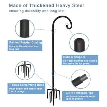 Artigarden 76 inch Outdoor Shepherd Hook with 5 Prong Base (2 Packs), Adjustable Heavy Duty Garden Hanging Stake for Bird Feeder Solar Light Plant Hanger Wedding Decor, Matte Black