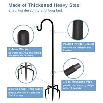 When it comes to outdoor décor, the Artigarden shepherd hooks stand out from the competition due to their premium materials and adjustable height feature. While many hooks on the market offer limited height options and flimsy designs, our product ensures stability with five sturdy prongs and a classic finish. You won’t find a better combination of style and strength anywhere else, making these hooks the go-to for durability and elegance.