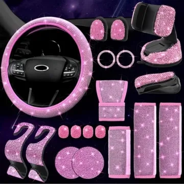 Show moreIntroducing the **ARTILAURA 19 Pack Bling Car Accessories for Women** – a stunning collection of exquisite automotive bling that will revolutionize your driving experience! Perfectly designed for those with an eye for style, this dazzling set includes everything you need to transform your car into a chic haven. Featuring a glamorous bling steering wheel cover adorned with eye-catching crystal rhinestones, you'll enjoy a stylish ride that’s as fashionable as it is functional. The set also includes thoughtfully designed seat belt covers for both comfort and safety, ensuring every drive is a delightful journey.