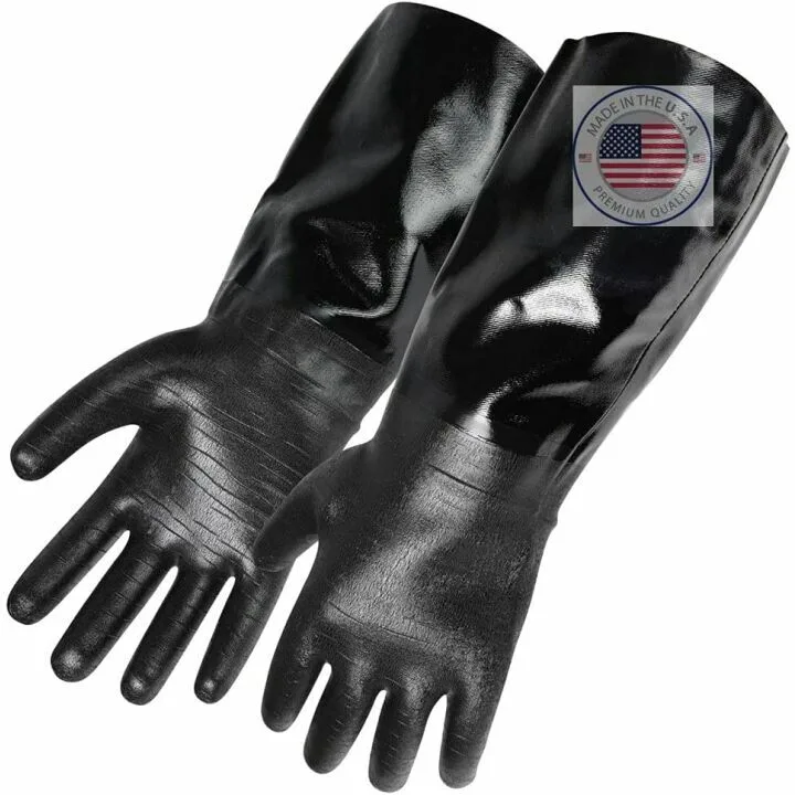 The gloves are made of food-grade neoprene rubber with a jersey cotton lining.