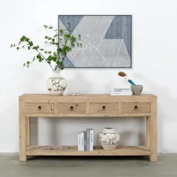 Show moreIntroducing the **Artissance 70" Long Capri 4 Drawers Sideboard**, a stunning addition to your home that beautifully merges functionality with craftsmanship. This sideboard is expertly crafted from solid weathered natural pinewood, showcasing a warm wooden tone that complements a variety of design schemes. Its handcrafted nature ensures that each piece is unique, adding a touch of individuality to your home decor. With generous dimensions of 70"W x 16"L x 33"H, it's perfect for displaying your prized possessions or organizing entertainment components. Already assembled upon arrival, it's ready to elevate your space without the hassle of installation.