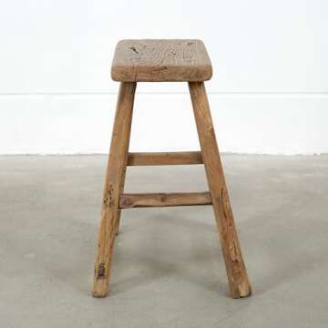 Artissance Rectangular Rustic Vintage Stool, Weathered Natural Wood Finish (Size & Finish Vary) - Approx Size 12-20 inches Wide, 6-9 inches deep, 18-22 inches Tall