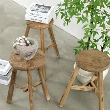 Show moreTransform your space with the stunning Artissance Round Vintage Stool, a piece that captures both elegance and rustic charm. Crafted from vintage-sourced, reclaimed wood, each stool is a testament to skilled craftsmanship, ensuring every item is not only unique but also filled with history. The weathered natural finish of this stool adds a rustic vibe, making it a perfect fit for both classic and modern decor styles. Measuring at approximately 10"W x 10"L x 20"H, this stool is designed to bring functionality to your setting, whether you're using it as an extra seat in your living room, a side table, or a decorative piece in your garden. Its durable construction assures you of long-lasting quality, even with daily use.