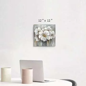 ARTISTIC PATH Floral Canvas Wall Art - White Blooming Flower Picture Artwork Abstract Botanical Prints for Bathroom Bedroom