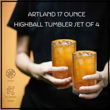 Artland 17oz Highball Tumbler, Set of 4 | Iris Seeded Design, Amber | Drinking Glass for Parties and Everyday Use - Mojito, Whiskey, Cocktail | Glassware & Kitchenware Essentials