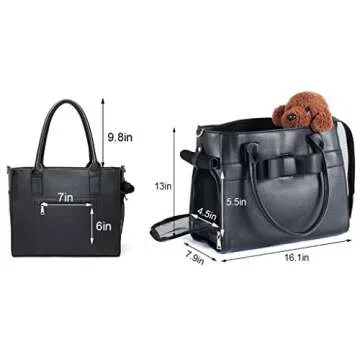 Show moreIntroducing the ARTLINE Fashion Dog Purse Carrier, a perfect blend of style and functionality designed for pet lovers on the go. Measuring at a convenient 16.1 x 7.9 x 13 inches, this airline-approved pet carrier is suitable for small to medium-sized pets weighing up to 14 pounds, including your beloved cat, rabbit, chihuahua, pomeranian, or yorkie. Its sleek black PU leather exterior not only adds a touch of elegance to your travel ensemble but also ensures durability with features like waterproof, rainproof, and windproof materials that protect your furry friend from harsh weather conditions.