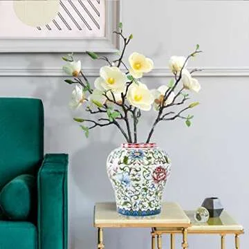 ARTLINE Jingdezhen Ceramic Ginger Jar with Lid, Chinese Style Temple Jar, Enamel Decorative Vase for Home Decor, Ceramic Storage Jar for Home Kitchen Dining Decoration