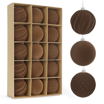 Show moreTransform your holiday decorating experience with the Artmag 15 Pcs Velvet Christmas Balls Hanging Ornaments Set. This exquisite collection features 15 beautifully flocked ornaments, each measuring approximately 3.15 inches in diameter. The rich brown hue brings a touch of elegance to your Christmas tree, enhancing your festive decor with a classic charm that is both sophisticated and warm. Made from high-quality shatterproof plastic, these ornaments are designed to withstand the twists and turns of holiday celebrations, ensuring they last for many seasons to come.