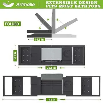 Artmalle Bathtub Caddy Tray - Expandable and Foldable Bath Tray for Tub, Luxury Bamboo Bath Caddy Tub Table, Bathtub Accessories with Book Holder and Free Soap Dish, Black