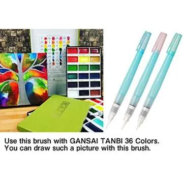 ArtMuseKitsMikash Kuretake Fude Water Brush Pen for Drawing Art for Lettering 3 Pens Set Small Size (S,M,L)