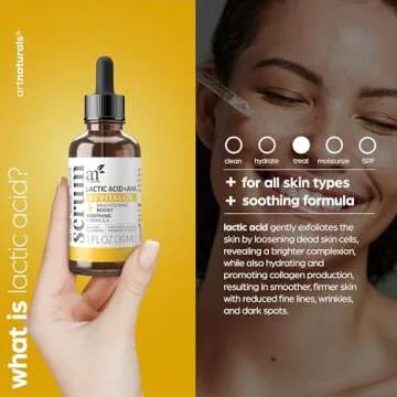 artnaturals Lactic Acid plus AHA Face Serum for Brightening Boost with Renewing Formula - Scars, Acne, Wrinkles - Exfoliates and Moisturizes the Skin - 1 oz.
