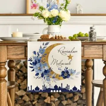 Show more Transform your dining experience with the exquisite Artoid Mode Castle Lantern Flower Ramadan Table Runner. This stunning 13 x 72 inch table runner is designed not just to protect your tables but to add a vibrant touch to your home decor. Made from 100% spun polyester, the table runner is not only soft and durable but also features sturdy sewing that guarantees long-lasting use. Whether you are hosting a festive gathering or enjoying daily meals with family, this piece ensures your table remains safe from hot pans, scratches, or spills, making it a practical yet stylish choice for any occasion.
