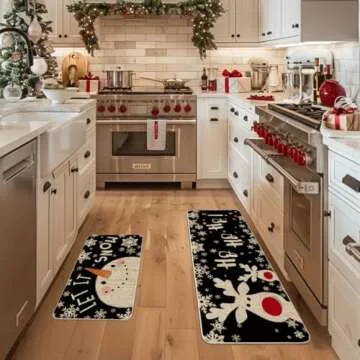 Show moreTransform your kitchen into a cheerful winter wonderland with the Artoid Mode Snowman Deer Let It Snow Snowflake Christmas Kitchen Mats Set. This set features two beautifully designed kitchen mats, each adorned with playful graphics and an inviting message perfect for the holiday season. The charming blend of snowmen and snowflakes brings a sense of warmth and festivity to your home decor, making meal prep and gatherings even more enjoyable. Measuring 17" x 29" and 17" x 47", these low-profile mats are designed to fit seamlessly into any kitchen or entryway, providing both style and functionality.