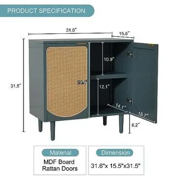 ARTPOWER Rattan Accent Cabinet with 2 Doors, Boho Sideboard Buffet Cabinet with Storage, Black Credenza with Shelf for Kitchen, Dining Room, Living Room, Entryway