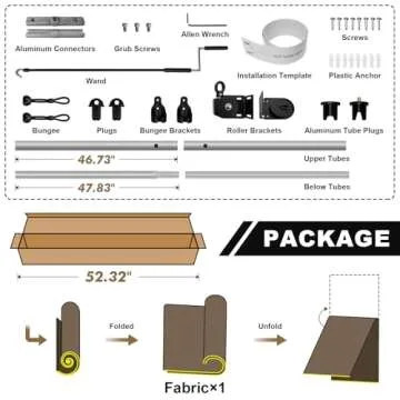 The Artpuch Outdoor Roller Shade comes with all necessary installation materials and easy-to-follow instructions, including video guides for a quick setup.