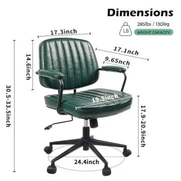 Artswish Mid Century Office Desk Chair - Green Leather Home Office Chair with Wheels and Arms