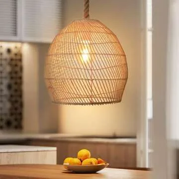 Arturesthome Mini Natural Rattan Pendant Light for Kitchen Island, Woven Lamp Shade Chandelier, Handmade Hanging Ceiling Light Lampshade, Rope Lamp D 9.8inx10.6in