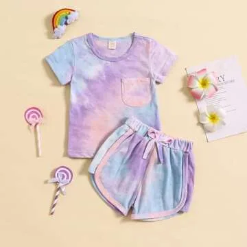 With brightness and style, this tie dye outfit ensures your little girl shines wherever she goes. Ideal for sunny days at the beach, exciting birthday parties, or playful afternoons in the yard, the lightweight and breathable fabric thoughtfully maintains comfort during the hottest summer days. Parents love the durability and vibrant hues, making this outfit a reliable choice for daily wear as well as special occasions.