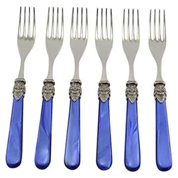 Show more Experience the elegance and durability of the Arvindgroup Napoleon Collection Cocktail/Salad Fork Set, a stunning addition to your dining table. This exquisite set, composed of six beautifully crafted forks, showcases a vibrant blue resin handle that complements its sleek 18/10 stainless steel construction. Crafted in Italy, these forks are not just functional; they embody a sophisticated style that adds a touch of class to any occasion. Designed for versatility, they are perfect for serving salads, hors d'oeuvres, or even a delightful cocktail twist!