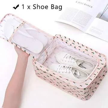 Arxus 8 Set Travel Waterproof Packing Organizers Cubes with Shoe Bag and Toiletry Bag (Cactus Print)